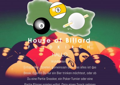 Das Break House of Billard ist seit 4 Jahren Kunde bei auXforma. Wir haben ihnen eine Website mit separater Mobile Page gebaut. Diese haben wir inhaltlich betreut.