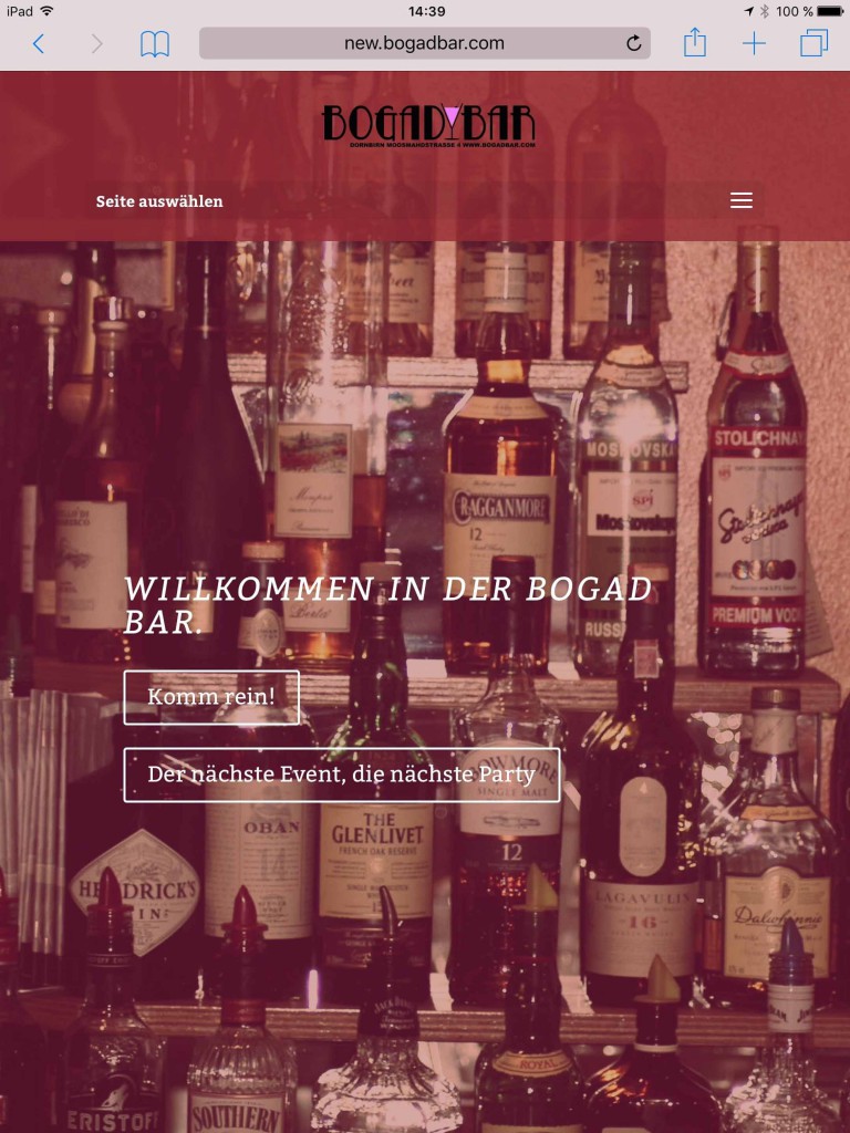 DIE BOGADBAR IST WEDER AUS DER DORNBIRNER GASTRONOMIE, NOCH AUS UNSERER KUNDENLISTE WEG ZU DENKEN. SEIT ES AUXFORMA GIBT, IST VINI BEI UNS KUNDE. NUN HAT ER DIE 3. VERSION SEINER WEBSITE. WIR HABEN VERSUCHT DIE STIMMUNG IN PIXEL ZU FASSEN. DIE STIMMUNG EINER KLASSISCHEN BAR, FÜR DAS INTERNET VON 2016.